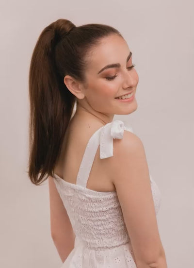 The clip and wrap-around design makes application quick and secure. Simply clip the extension over your natural ponytail and wrap the integrated strand of hair around the base for a seamless, polished finish.