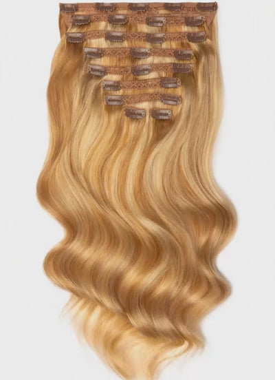 16 inch Deluxe Clip in Hair Extensions Light Brown with Light Blonde Highlights