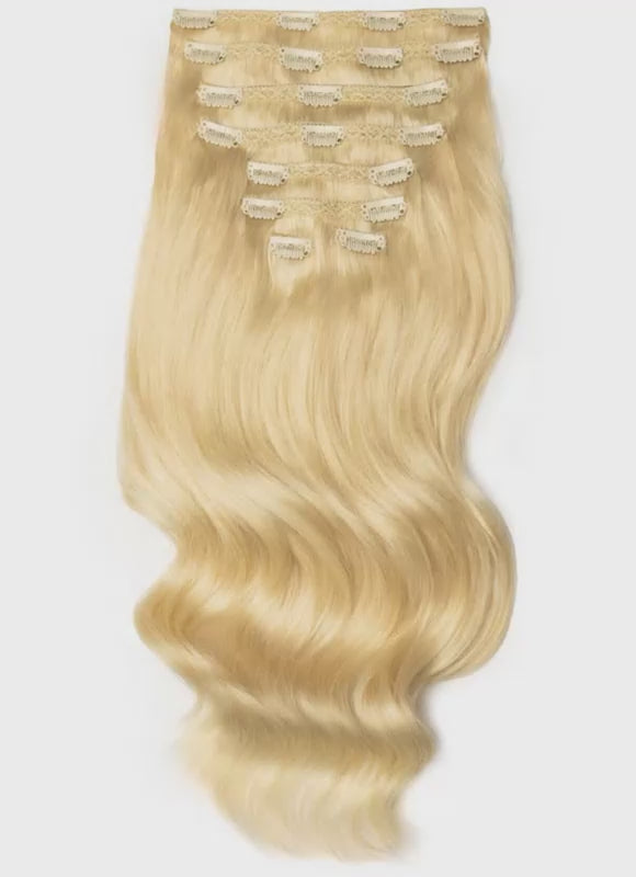 16 inch Full Volume Clip in Hair Extensions #613 Bleached Blonde