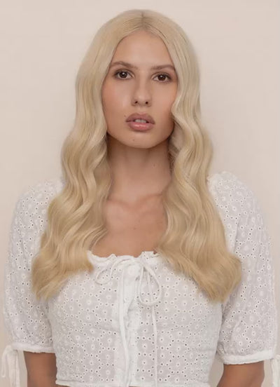 Add instant length, volume, and glamour with our premium 16 inch Full Volume Clip-In Hair Extensions in Ice Blonde. Crafted from 100% Remy human hair, these extensions are soft, silky, and blend beautifully with your natural hair for a flawless finish.