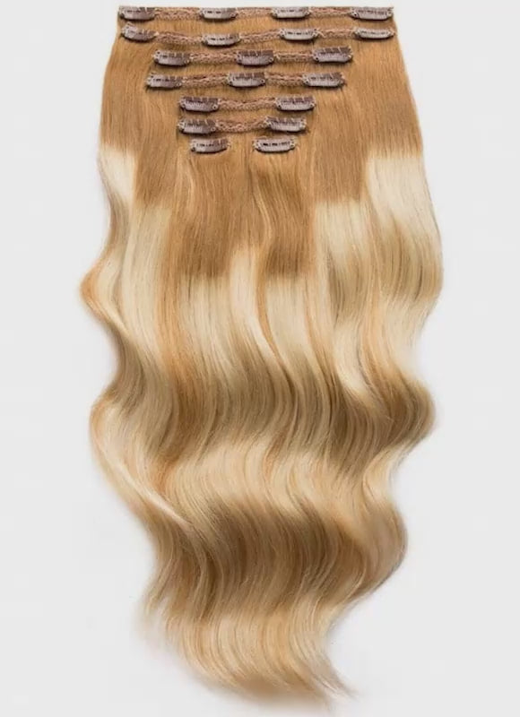 16 inch Full Volume Clip in Hair Extensions Ash Brown & Light Blonde Balayage