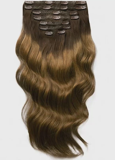 16 inch Full Volume Clip in Hair Extensions Mocha & Medium Brown Balayage