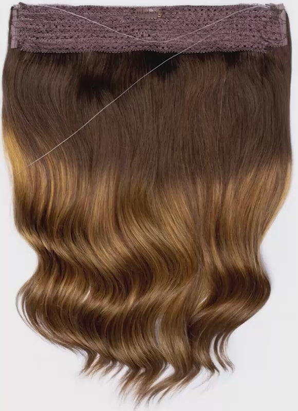 Achieve fuller, thicker hair in seconds with our 16 inch Halo Hair Extensions in Dark & Light Brown Balayage. Crafted from 100% Remy human hair, this innovative one-piece extension offers a comfortable, lightweight, and temporary alternative to traditional methods like clips, glues, beads, and weaves.