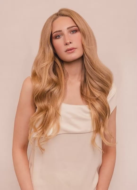 Our 20” Seamless Clip-In Hair Extensions in Light Golden Blonde blend effortlessly for a flawless finish. Crafted with ultra-lightweight, invisible wefts, they lie flat against the scalp for a discreet and comfortable fit. Made from the highest grade 100% genuine Remy human hair, these extensions deliver silky softness, natural movement, and long-lasting wear. Each weft features premium metal clips lined with silicone for a secure, gentle hold that stays in place all day.