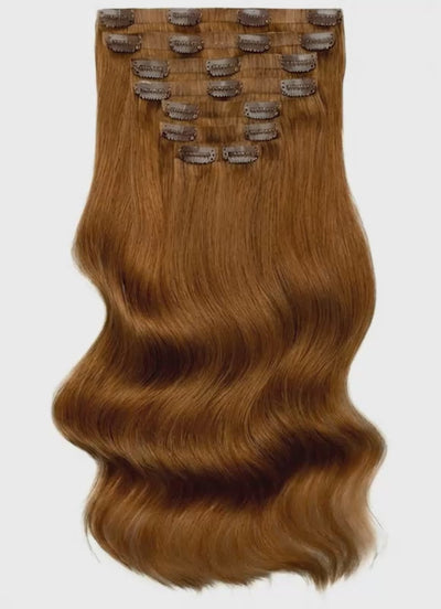 Our 20” Seamless Clip-In Hair Extensions in Light Chestnut Brown blend effortlessly for a flawless finish. Crafted with ultra-lightweight, invisible wefts, they lie flat against the scalp for a discreet and comfortable fit. Made from the highest grade 100% genuine Remy human hair, these extensions deliver silky softness, natural movement, and long-lasting wear. Each weft features premium metal clips lined with silicone for a secure, gentle hold that stays in place all day.