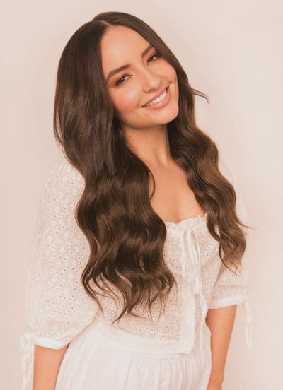 Indulge in the thickest, most luxurious hair extensions we offer — our 20 inch Ultimate Volume Clip-In Hair Extensions in Mocha Brown. Crafted from double drawn, 100% cuticle-aligned Remy human hair, these premium extensions deliver exceptional thickness from top to ends, a soft, silky feel, and stunning, natural-looking volume.