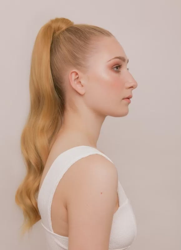 Get the perfect ponytail in seconds with our 22 Inch Clip-In Ponytail Extension in #16 Light Golden Blonde. Crafted from double drawn, cuticle-aligned 100% Remy human hair, this premium clip-in piece adds instant length, volume, and sleek style to your natural ponytail — without the need for teasing or damage.
