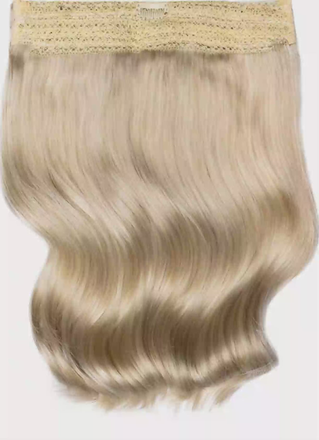 Achieve fuller, thicker hair in seconds with our 22 inch Halo Hair Extensions in Platinum Blonde. Crafted from 100% Remy human hair, this innovative one-piece extension offers a comfortable, lightweight, and temporary alternative to traditional methods like clips, glues, beads, and weaves.