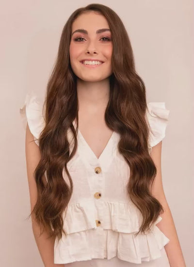 Take your look to the next level with our 24 inch Deluxe Clip-In Hair Extensions in Dark Brown. Crafted from the highest grade 100% genuine Remy human hair, these premium extensions provide luxurious length, volume, and a soft, silky finish that blends seamlessly with your natural hair.