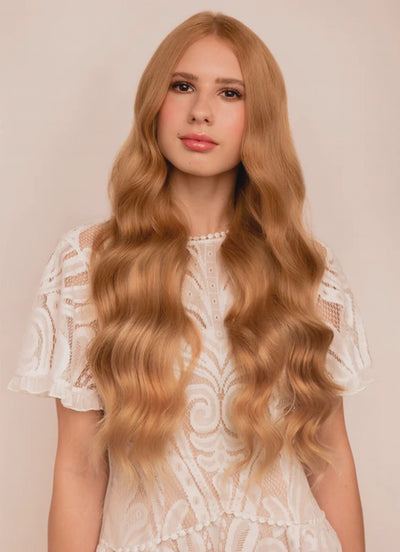 Indulge in the thickest, most luxurious hair extensions we offer — our 24 inch Ultimate Volume Clip-In Hair Extensions in Dark Blonde. Crafted from double drawn, 100% cuticle-aligned Remy human hair, these premium extensions deliver exceptional thickness from top to ends, a soft, silky feel, and stunning, natural-looking volume.