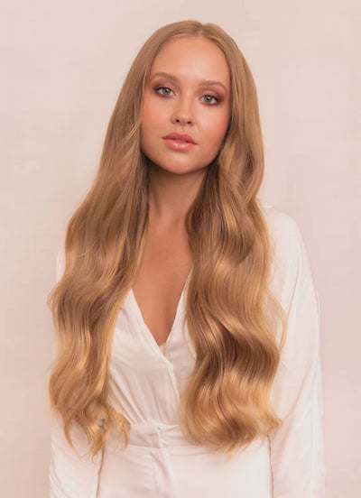 Indulge in the thickest, most luxurious hair extensions we offer — our 24 inch Ultimate Volume Clip-In Hair Extensions in Golden Blonde. Crafted from double drawn, 100% cuticle-aligned Remy human hair, these premium extensions deliver exceptional thickness from top to ends, a soft, silky feel, and stunning, natural-looking volume.