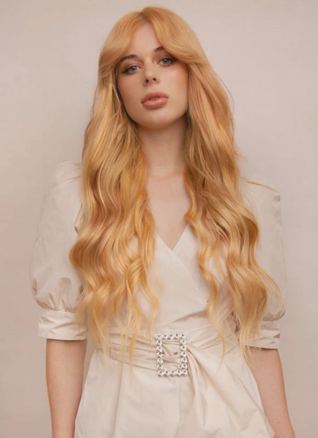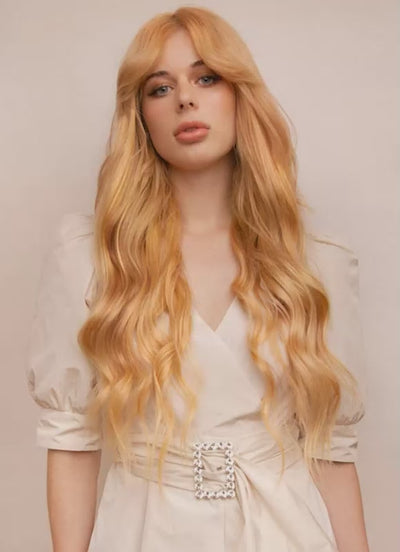 Indulge in the thickest, most luxurious hair extensions we offer — our 24 inch Ultimate Volume Clip-In Hair Extensions in Strawberry Blonde. Crafted from double drawn, 100% cuticle-aligned Remy human hair, these premium extensions deliver exceptional thickness from top to ends, a soft, silky feel, and stunning, natural-looking volume.