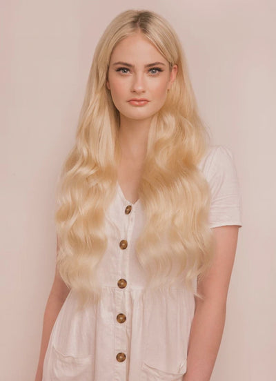Indulge in the thickest, most luxurious hair extensions we offer — our 24 inch Ultimate Volume Clip-In Hair Extensions in Light Blonde. Crafted from double drawn, 100% cuticle-aligned Remy human hair, these premium extensions deliver exceptional thickness from top to ends, a soft, silky feel, and stunning, natural-looking volume.