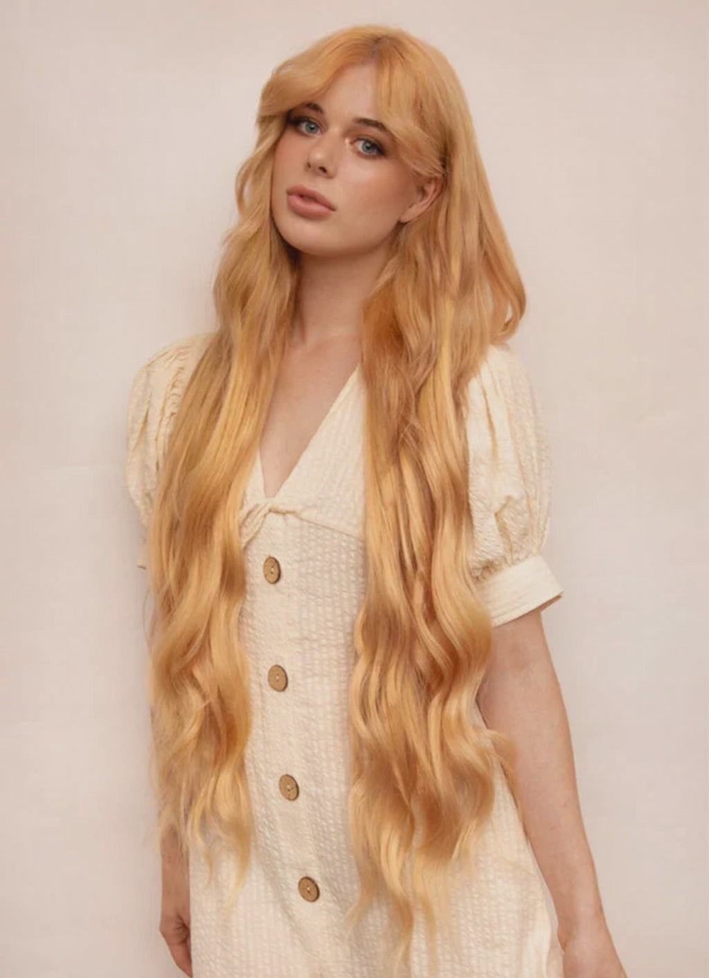 Experience unparalleled length and volume with our 30 inch Ultimate Volume Clip-In Hair Extensions in Strawberry Blonde. Crafted from the highest grade 100% Remy human hair, these extensions are double drawn and cuticle-aligned, ensuring thickness from root to tip and a silky, tangle-free finish.